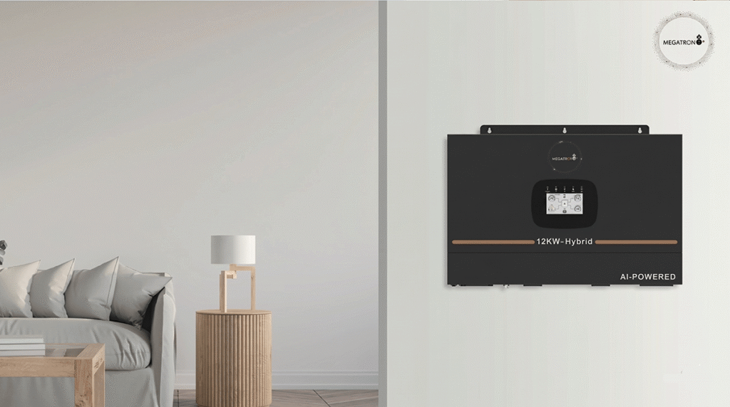 The Megatron AI Hybrid Inverter is a sophisticated energy management solution that intelligently optimizes power flow between solar panels, battery storage, and utility input. Engineered for high-demand residential and commercial environments, this 12kW unit offers industrial-grade reliability with advanced AI control to ensure efficient, seamless performance during any power disruption.